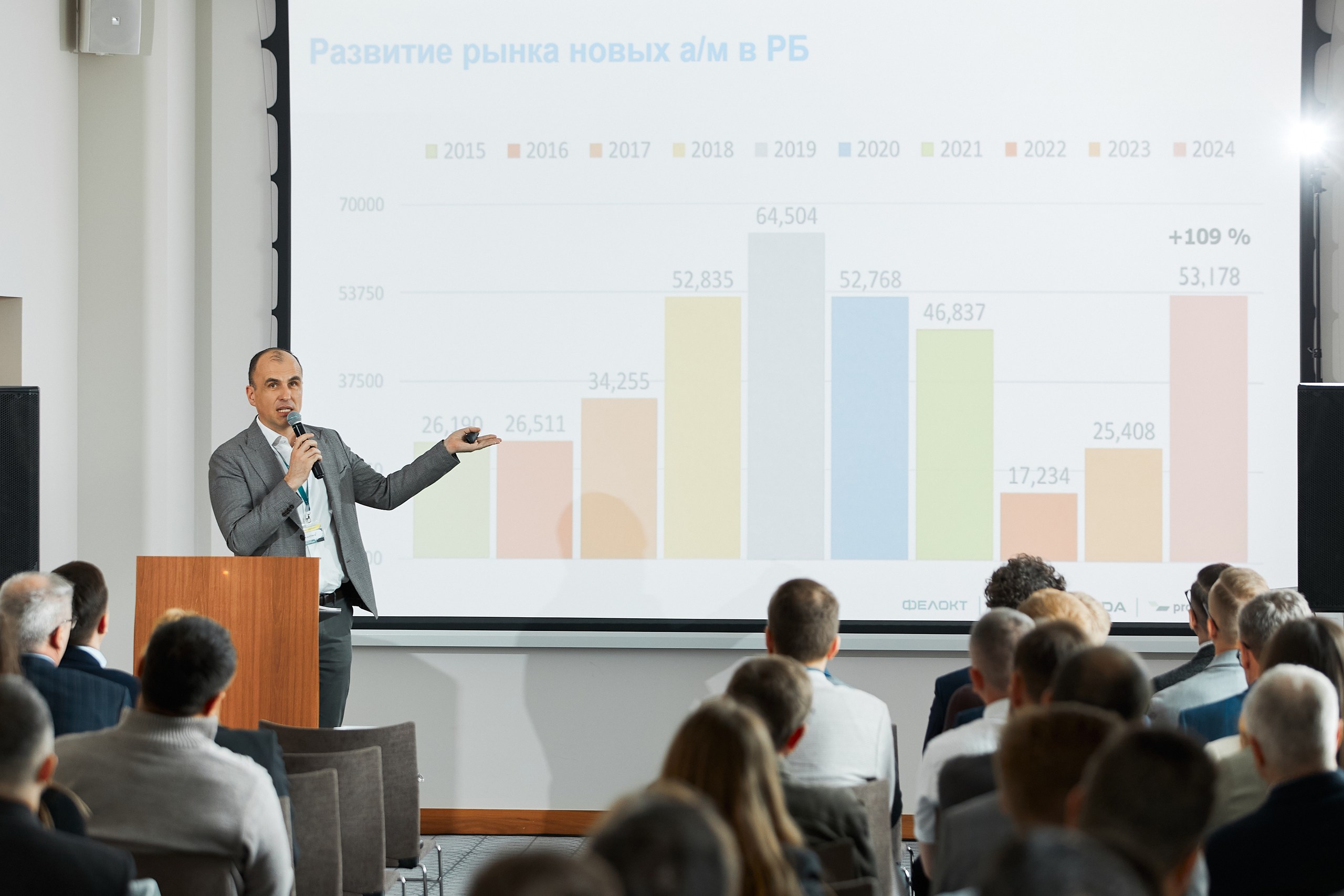 Дмитрий Пирожков, директор Р1 Лизинг, представил обзор рынка лизинга в Беларуси и обозначил ключевые векторы развития: